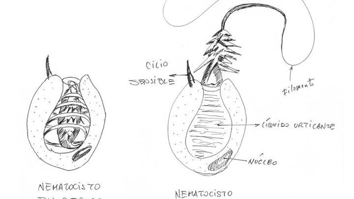En particular las medusas fragata portuguesa tienen una bolsa de llamativos colores azules o verdosos, llena con gas que les permite flotar y desplazarse a la deriva impulsada por los vientos, de ahí su elegante y romántico nombre; bajo esta bolsa penden un buen número de "ramales" que técnicamente son tentáculos. Estos apéndices, en su superficie, tienen miles de cápsulas llamadas nematocistos, en cuyo interior se aloja una pequeña aguja con forma de arpón, tiene una arista que se fija en el tejido que penetra: este arpón está unido a un filamento que a su vez se dispara y envenena a la herida. Este veneno, ciertamente, no es para dañar a bañistas y surfistas en particular, es, básicamente, un arma de caza, la deriva de este animal lo lleva eventualmente a toparse con un pez que, al entrar en contacto con los tentáculos, activa un mecanismo de disparo y hace que estos nematocistos se activen, erizándose por miles, hiriendo al pez, e inoculándole una muy eficiente neurotoxina que paraliza a la presa induciéndole la muerte muy rápidamente, el pez queda sujeto con estas agujas como arpones que se le anclan en la musculatura. Lo que se inyecta en una pequeña herida, pero replicada por miles, son un coctel asombroso de compuestos, que altera los canales de sodio y calcio, destruye membranas celulares, produce inflamaciones y finalmente afecta las funciones cardíacas, y renales (véase http://www.scielo.cl/scielo.php?pid=S0034-98872004000200014&script=sci_arttext).